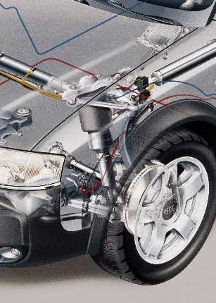 automatisch der Druck in den Federbälgen. Die Federung bleibt dadurch im Verhältnis von Beladung zu Federhärte konstant. Solch eine Variante gab es bisher bei Audi nur für den A6 Avant als Niveauregulierung für die Hinterachse.